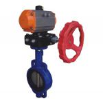 氣動蝶閥是由氣動執行器和蝶閥組成。氣動蝶閥是用隨閥桿轉動的圓形蝶板做啟閉性,以實現啟用動作的氣動閥門,主要做截斷閥使用,亦可設計成具有調節或段閥兼調節的功能,具有力矩增大,轉動靈活,結構簡單,體積小重量輕等優點。氣動蝶閥分類:不銹鋼氣動蝶閥,硬密封氣動蝶閥,軟密封氣動蝶閥,碳鋼氣動蝶閥。蝶閥體內無連桿、螺栓等、工作可靠、使用壽命長,可以多工位安裝,不受介質流向影響。氣動蝶閥廣泛應用于化工、建材、電站、玻璃等行業中的通風、環保工程的含塵冷風或熱風氣體管道中,作為氣體介質調節流量或切斷裝置。